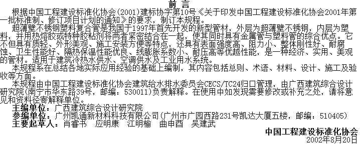 建筑给水超薄壁不锈钢塑料复合管管道工程技术规程收藏