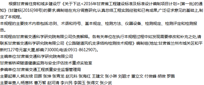 公路隧道风机支承结构检测技术规程收藏