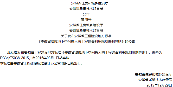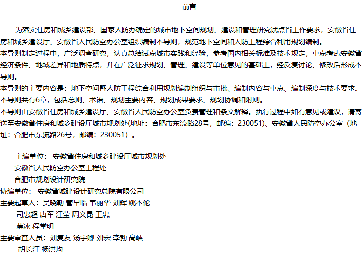 安徽省城市地下空间暨人防工程综合利用规划编制导则收藏