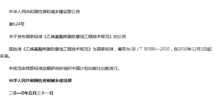 乙烯基酯树脂防腐蚀工程技术规范收藏
