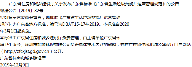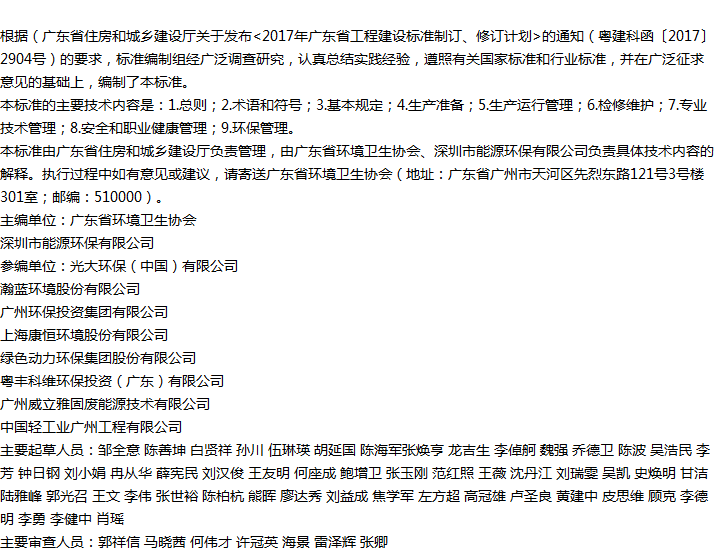 广东省生活垃圾焚烧厂运营管理规范收藏