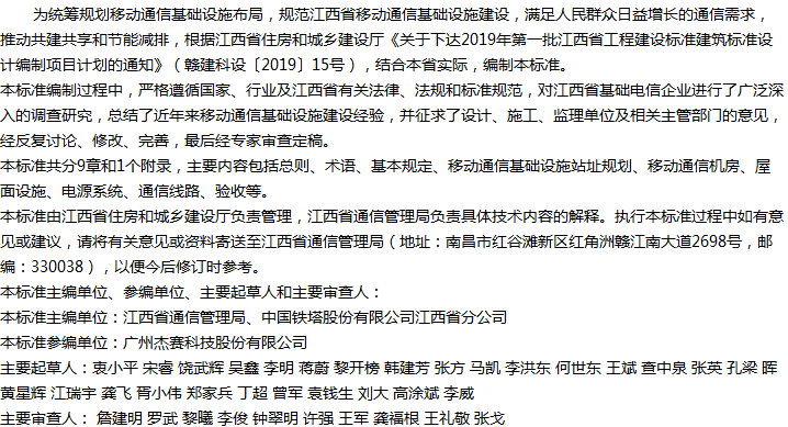当前位置:首页 > 标准规范 > 江西省建筑物移动通信基础设施建设标准 <返回