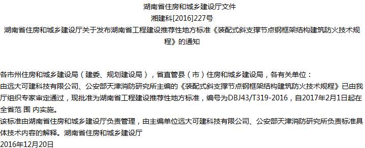 装配式斜支撑节点钢框架结构建筑防火技术规程收藏
