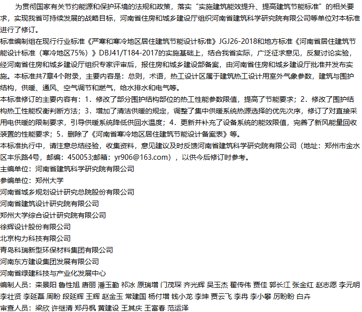 河南省居住建筑节能设计标准(寒冷地区75%)收藏