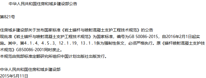 岩土锚杆与喷射混凝土支护工程技术规范收藏