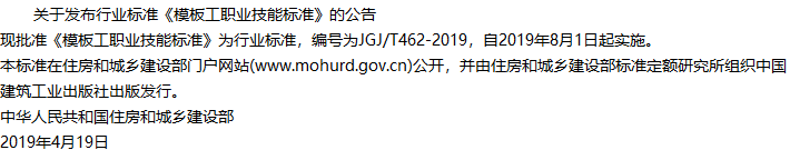 模板工职业技能标准收藏