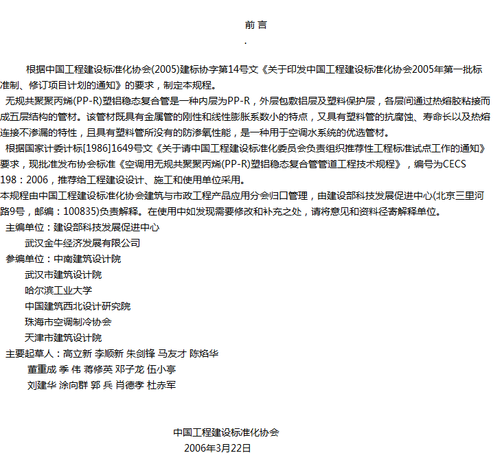空调用无规共聚聚丙烯(PP-R)塑铝 稳态复合管管道工程技术规程收藏