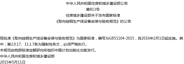 取向硅钢生产线设备安装与验收规范收藏