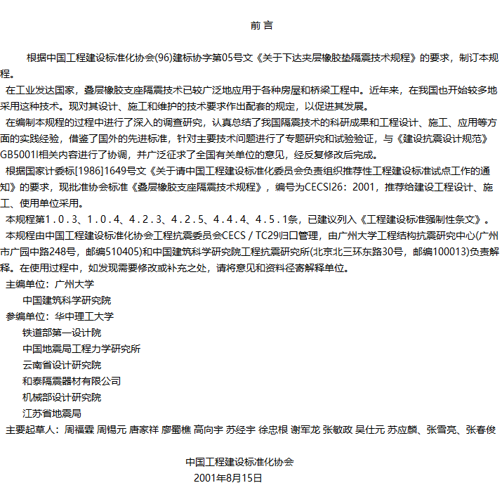 叠层橡胶支座隔震技术规程收藏