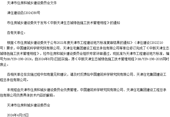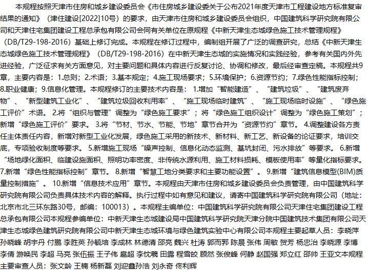 中新天津生态城绿色施工技术管理规程收藏
