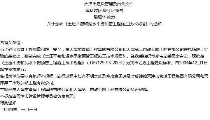 土压平衡和泥水平衡顶管工程施工技术规程收藏
