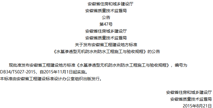 水基渗透型无机防水剂防水工程施工与验收规程收藏