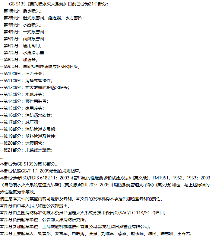 自动喷水灭火系统 第18部分:消防管道支吊架收藏