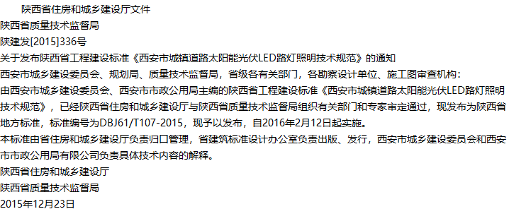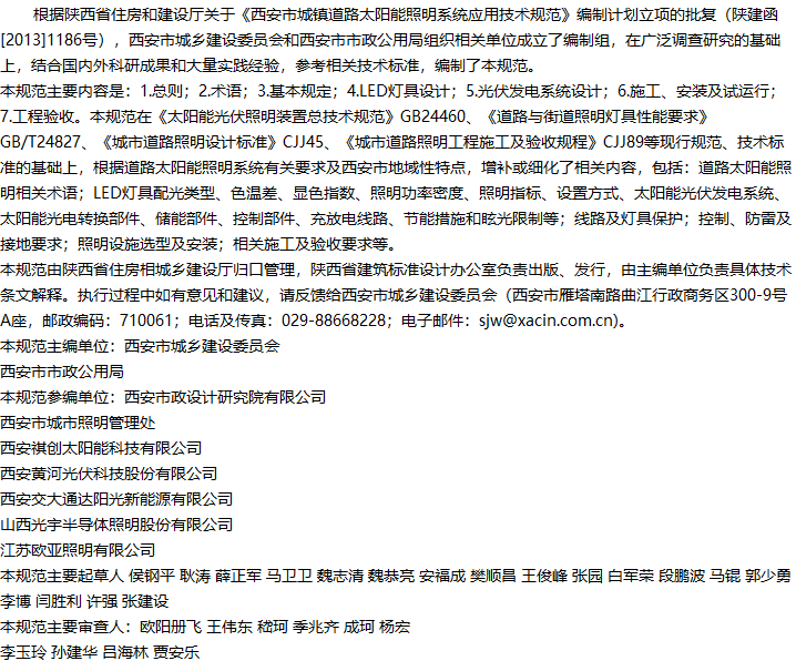 西安市城镇道路太阳能光伏LED路灯照明技术规范收藏