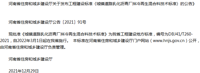 城镇道路乳化沥青厂拌冷再生混合料技术标准收藏