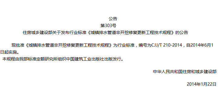 城镇排水管道非开挖修复更新工程技术规程收藏