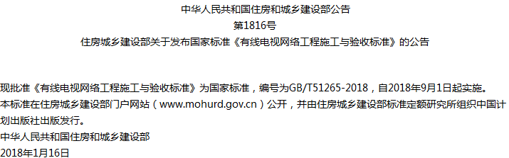 有线电视网络工程施工与验收标准收藏