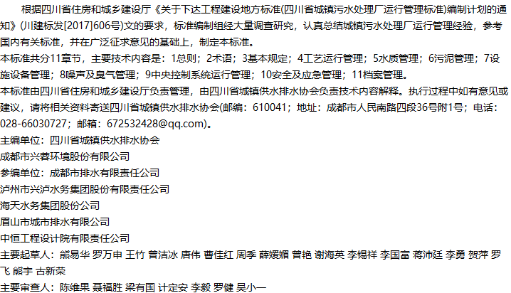 四川省城镇污水处理厂运行管理标准收藏