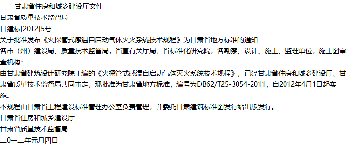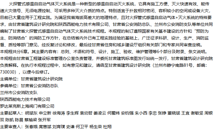 火探管式感温自启动气体灭火系统技术规程收藏
