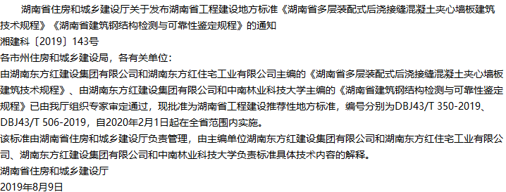 湖南省多层装配式后浇接缝混凝土夹心墙板建筑技术规程收藏