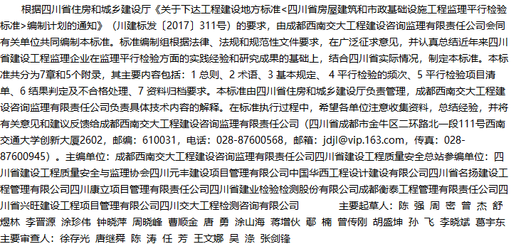 四川省房屋建筑和市政基础设施工程监理平行检验标准收藏