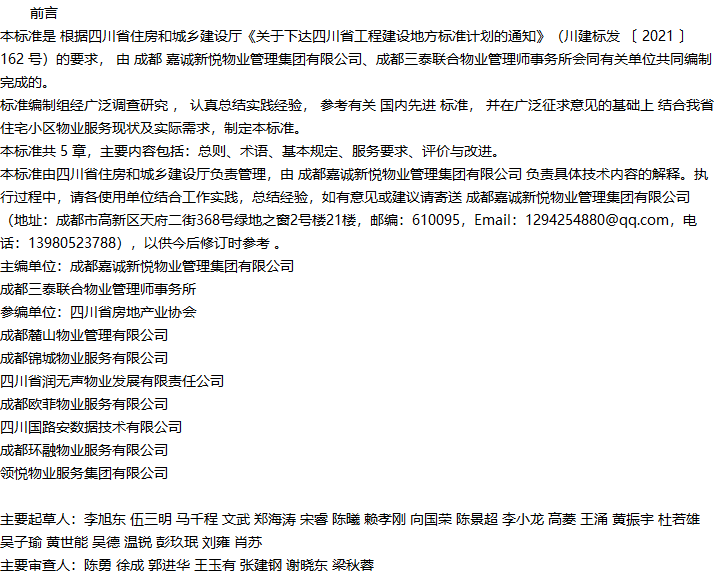 四川省物业服务标准 第1分册: 住宅小区物业服务标准