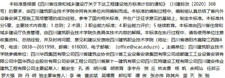 当前位置:首页 > 标准规范 > 四川省住房和城乡建设领域管理人员职业标准设备安装工程施工现场管理人员分册 <返回