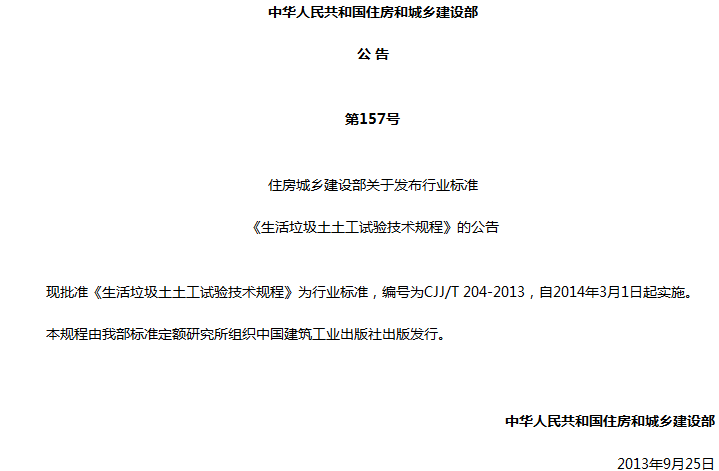 生活垃圾土土工试验技术规程收藏