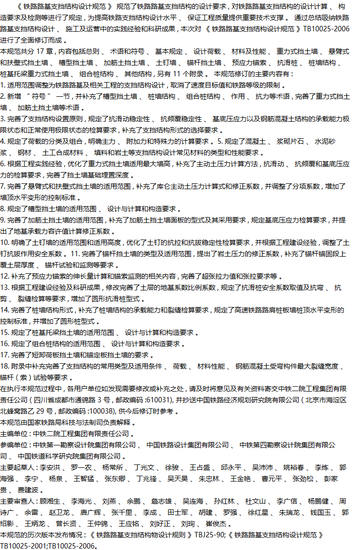 铁路路基支挡结构设计规范收藏