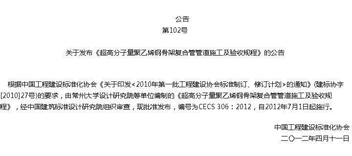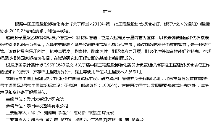 超高分子量聚乙烯钢骨架复合管管道施工及验收规程收藏