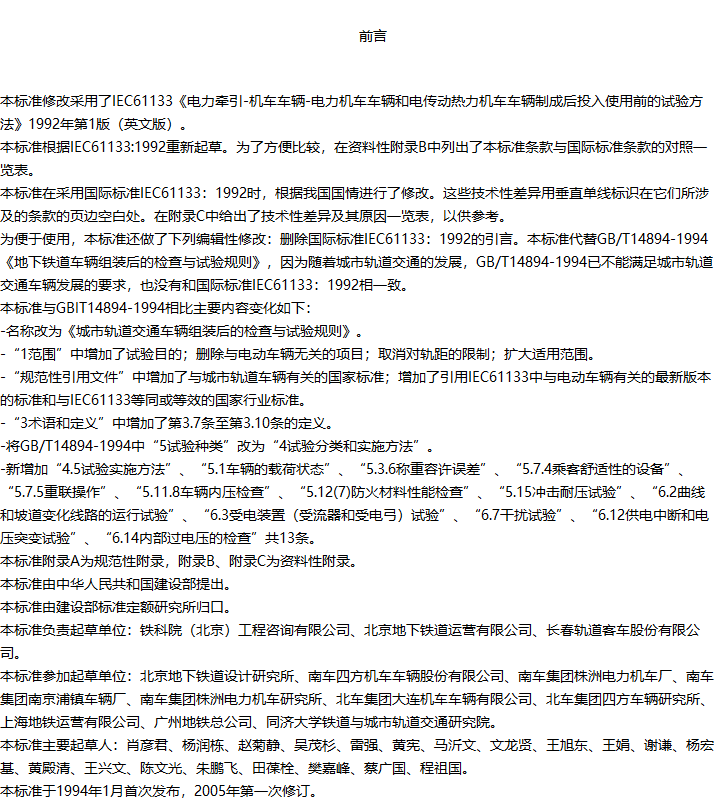城市轨道交通车辆组装后的检查与试验规则收藏