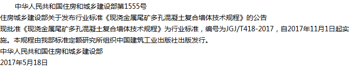 现浇金属尾矿多孔混凝土复合墙体技术规程收藏