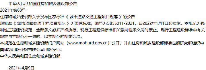 城市道路交通工程项目规范收藏