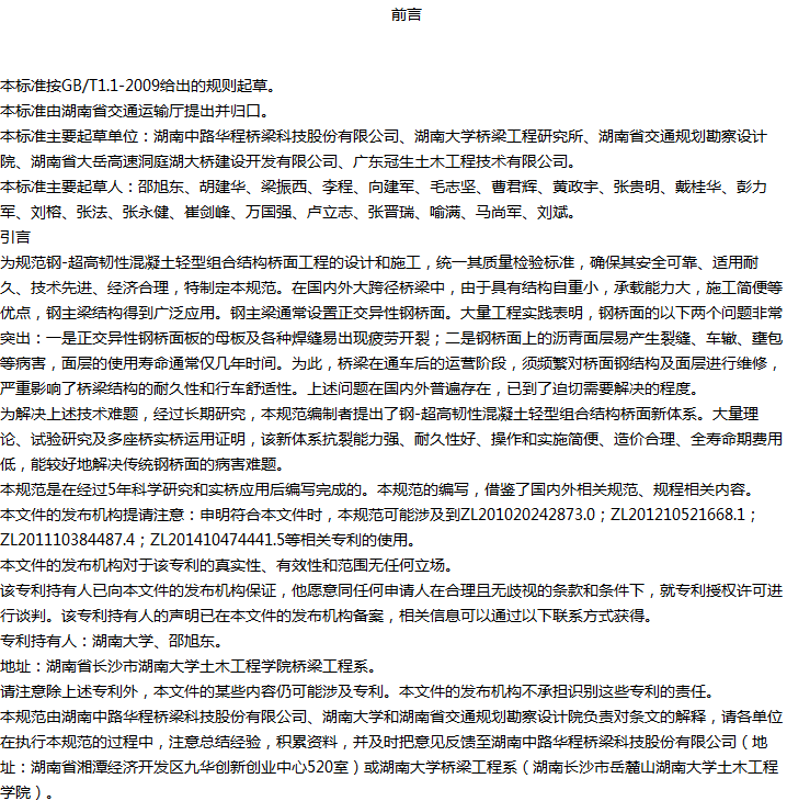 钢-超高韧性混凝土轻型组合结构桥面技术规范收藏