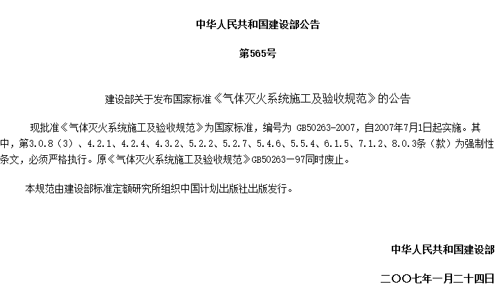 气体灭火系统施工及验收规范收藏