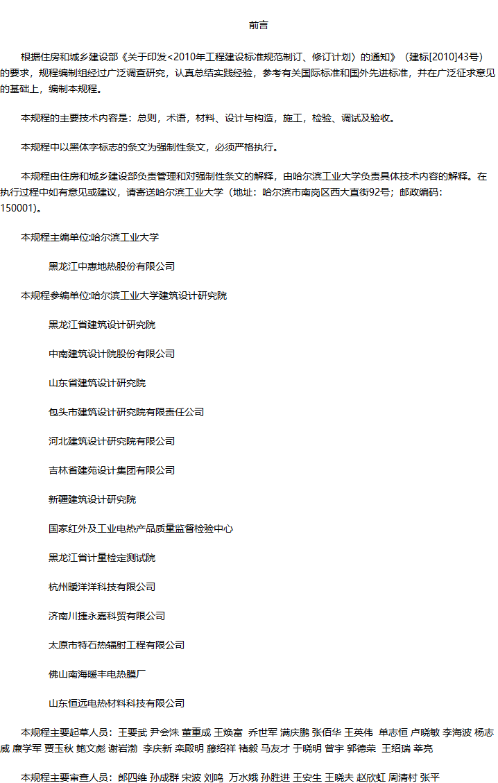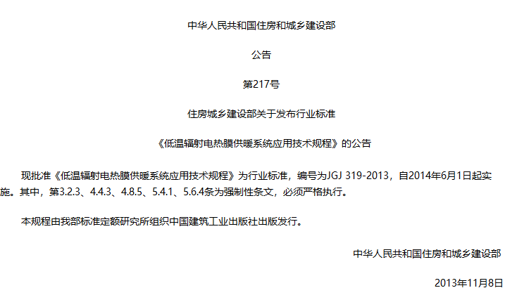 低温辐射电热膜供暖系统应用技术规程收藏