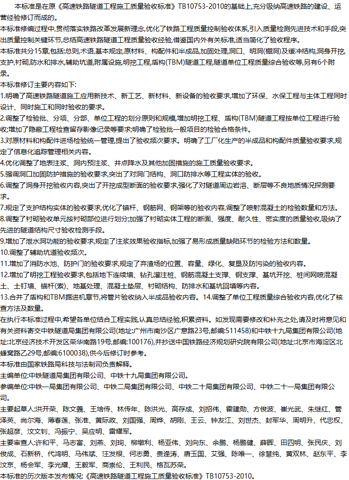 高速铁路隧道工程施工质量验收标准收藏