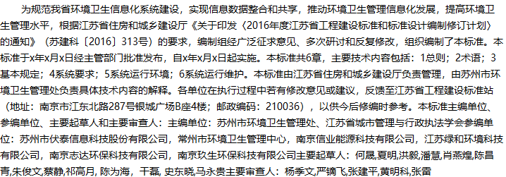 江苏省环境卫生信息化系统技术标准收藏