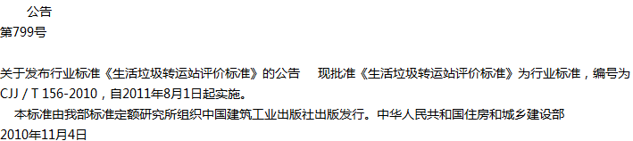 当前位置:首页 > 标准规范 > 生活垃圾转运站评价标准 <返回