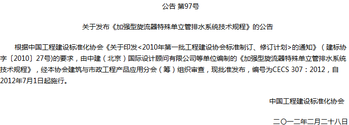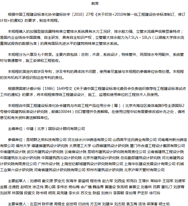 加强型旋流器特殊单立管排水系统技术规程收藏