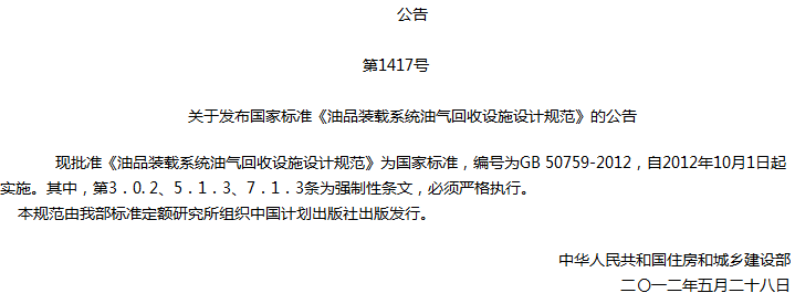 油品装载系统油气回收设施设计规范收藏
