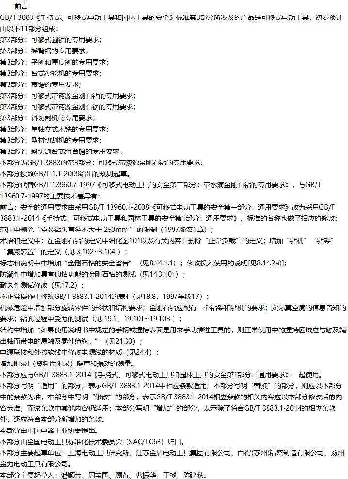 手持式、可移式电动工具和园林工具的安全 第3部分:可移式带液源金刚石钻的专用要求收藏