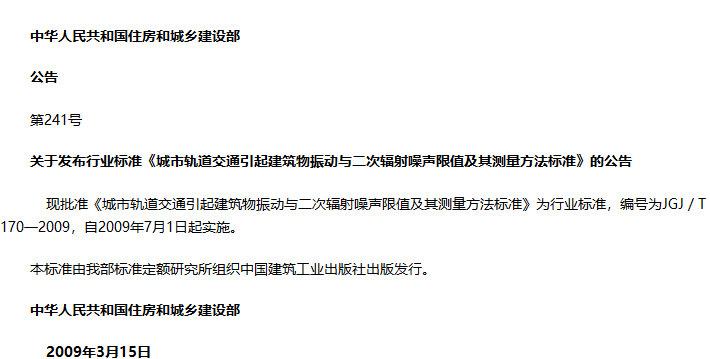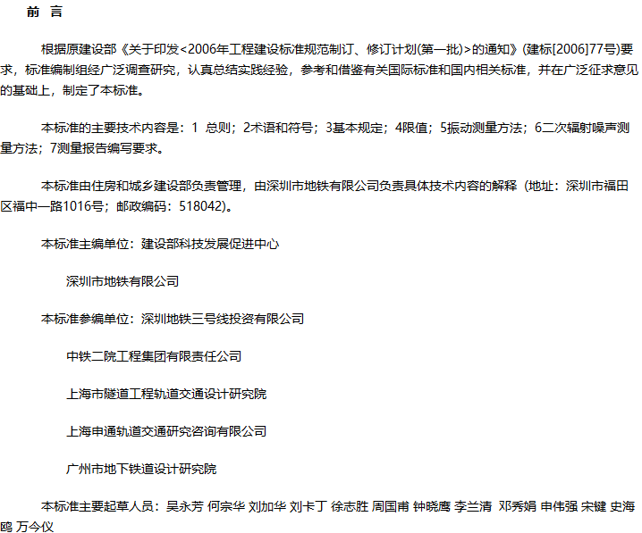 城市轨道交通引起建筑物振动与二次辐射噪声限值及其测量方法标准收藏