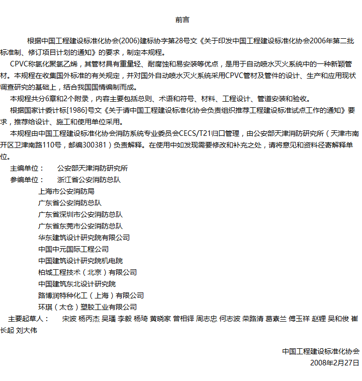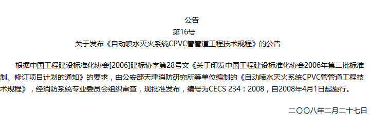 自动喷水灭火系统CPVC管管道工程技术规程收藏