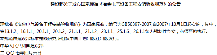 冶金电气设备工程安装验收规范收藏