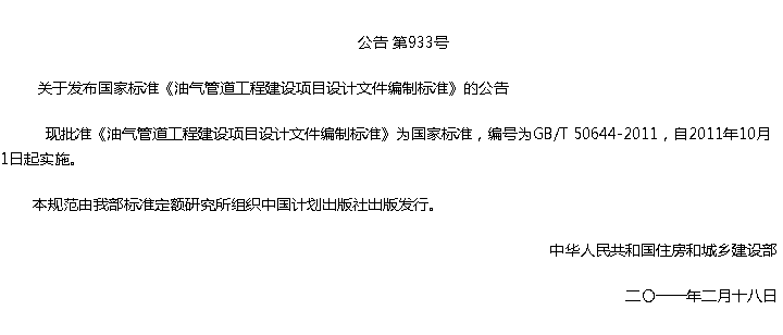 油气管道工程建设项目设计文件编制标准收藏