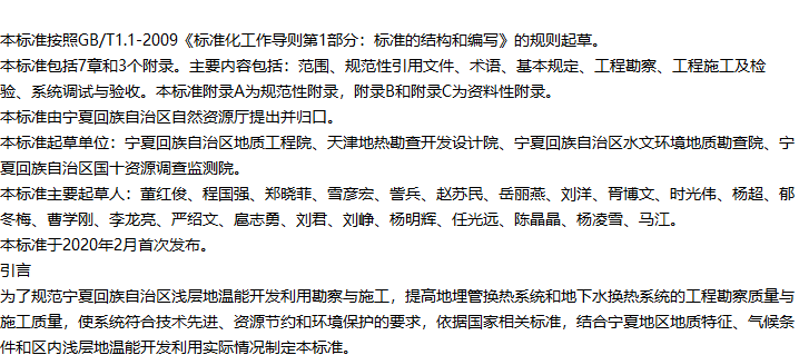 宁夏浅层地温能勘察施工技术规程收藏