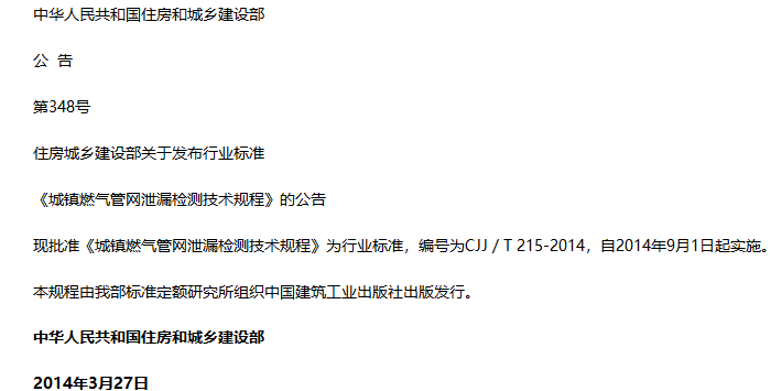 城镇燃气管网泄漏检测技术规程收藏