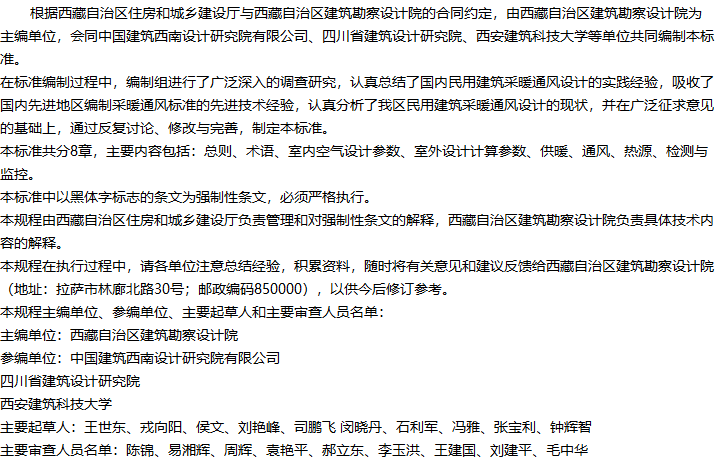 西藏自治区民用建筑供暖通风设计标准收藏