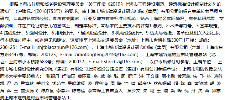 城市自然通风地下道路工程设计标准收藏